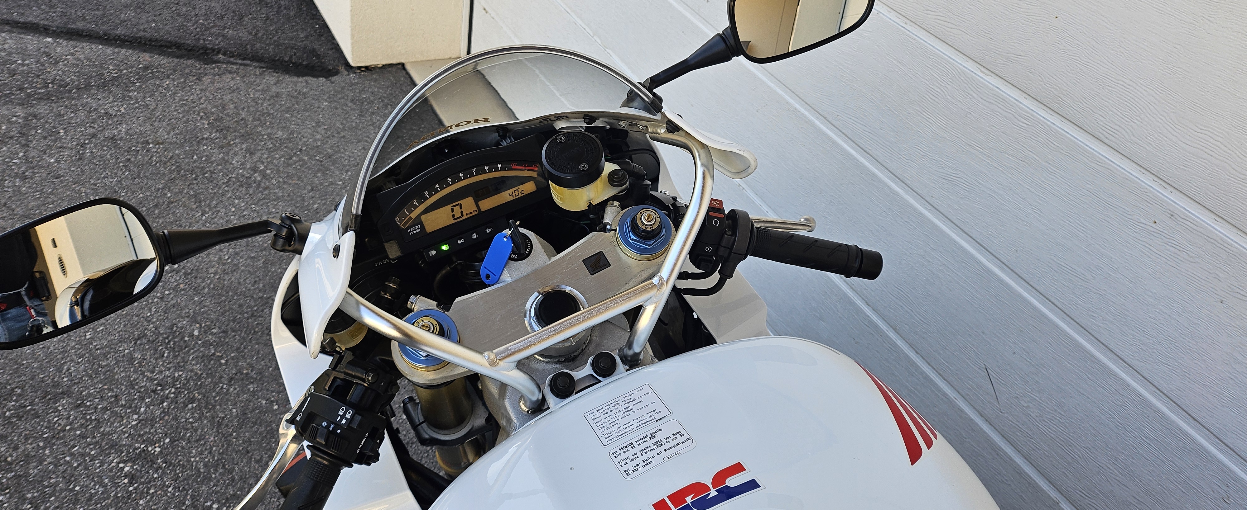 Zubehör: Soziusabdeckung, HRC Bremsbehälterisolationen, spez. rote Lenkerenden + Alu Gabelbrückenmutter + Tankverschlussschrauben + Verschalungsschrauben+ Schwingen- und Achsmuttern v+h, echt Carbon Tankprotektor, Felgendesign, TPMS Reifendruckkontrollsystem mit Temperaturanzeigen und Warnsystem, Schwingenständeraufnahmen, spez. Oeldeckel, Heckumbau mit LED Beleuchtung (mini LED Blinker mit integriertem Rücklicht/Bremslicht und Blinklicht), spez. Kupplung- und Bremshebel, Tanktasche und Hecktasche für Fireblade...
