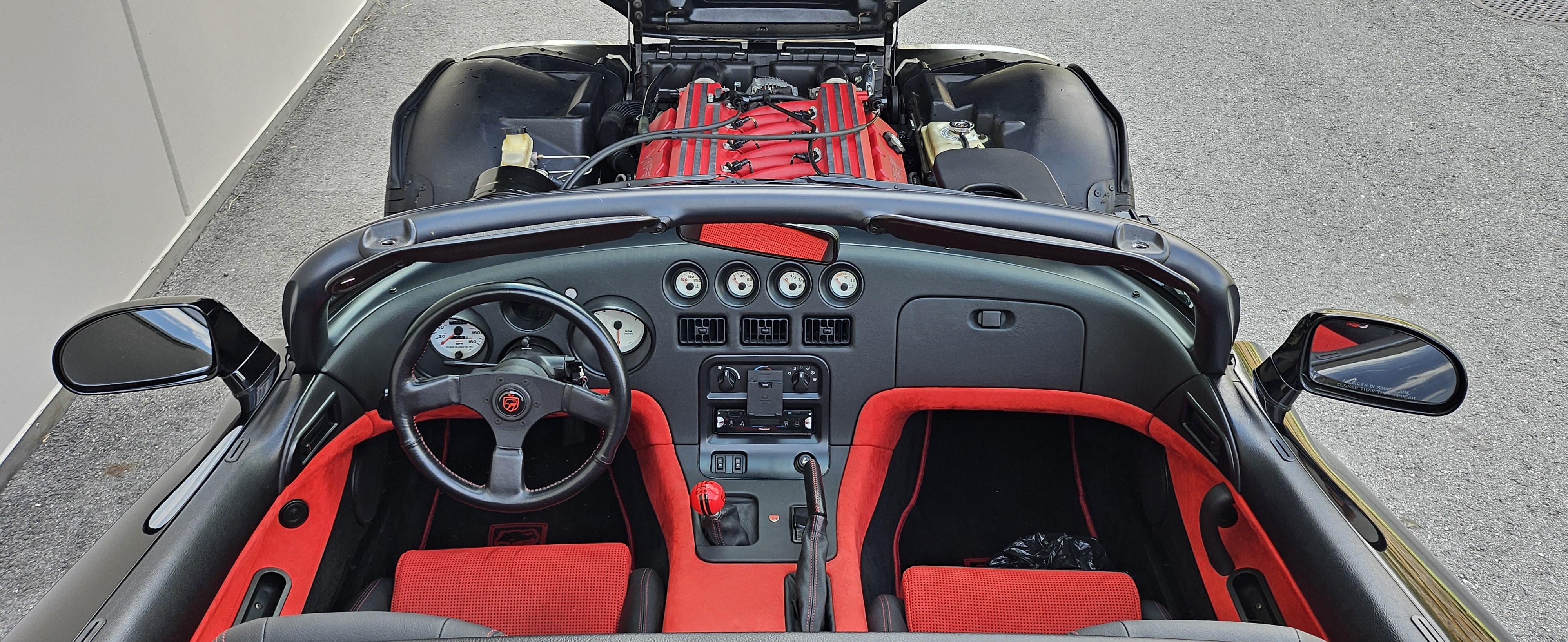 Coswoth mini Heckspoiler, Carbon Auspuffblenden, spez Auspuffanlage Doppeltopf quer eingebaut (Auslass-Kolector/Down+Uppipe) direkt ab Zylinder, Auslasskolector mit gleich langen Rohren (dadurch minimierter Boxer Sound), Carbon Grill mit Carbon Haubenveriegelungen, Carbon Spoilerlippe, Carbon Haubenlufteinlass, Oelkühler, Carbon Seitenschweller seilich und hinten etc....